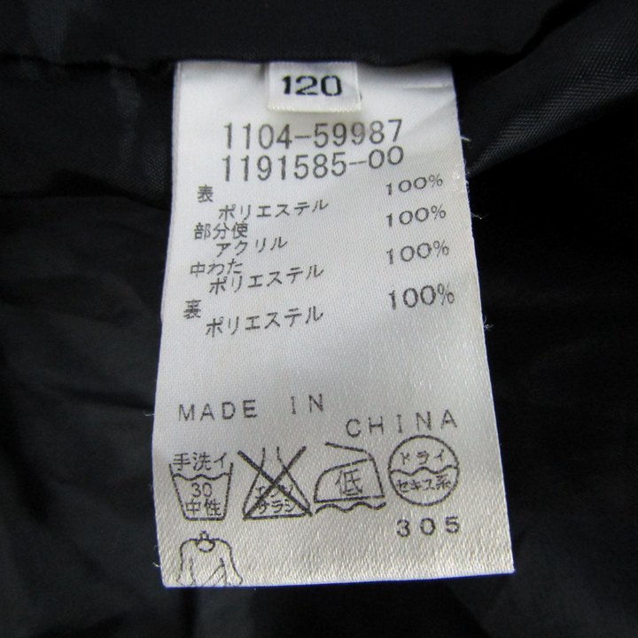 べべ 中綿ジャケット コート ジャンパー アウター キッズ 女の子用 120サイズ ブラック BeBe 【中古】