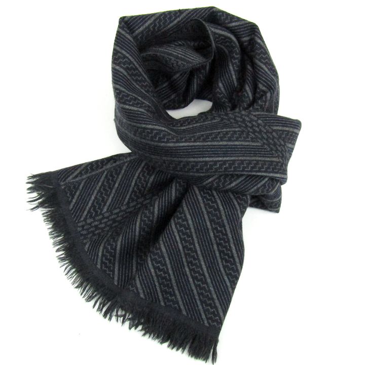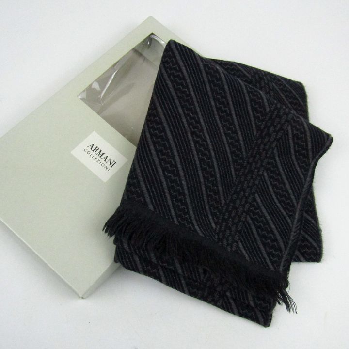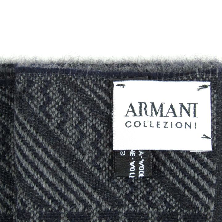 アルマーニコレッツォーニ スカーフ 総柄 ウール ストール マフラー イタリア製 ブランド メンズ ネイビー ARMANI COLLEZIONI 【中古】
