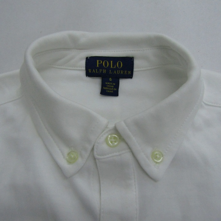 ポロラルフローレン 長袖シャツ トップス ボタンダウン 無地 キッズ 男の子用 6サイズ ホワイト POLO RALPH LAUREN 【中古】
