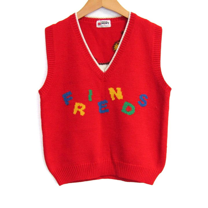 ファミリア ニットベスト ジャケット アウター Vネック スヌーピーコラボ キッズ 女の子用 130サイズ 赤×白×黄 Familiar 【中古】