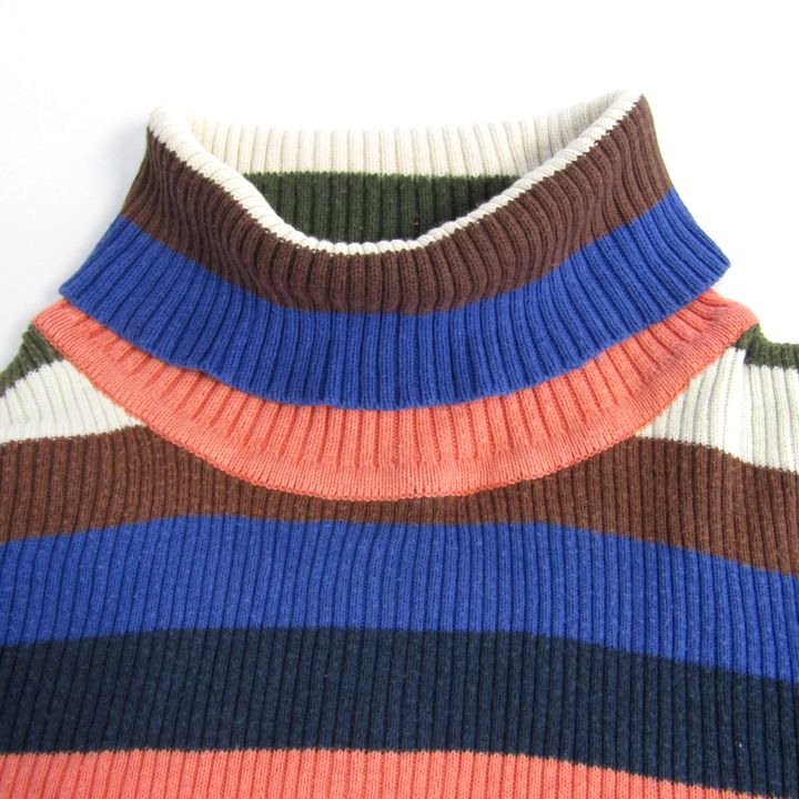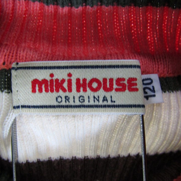 ミキハウス セーター トップス 長袖 タートルネック ボーダー柄 リブニット キッズ 女の子用 120サイズ ...