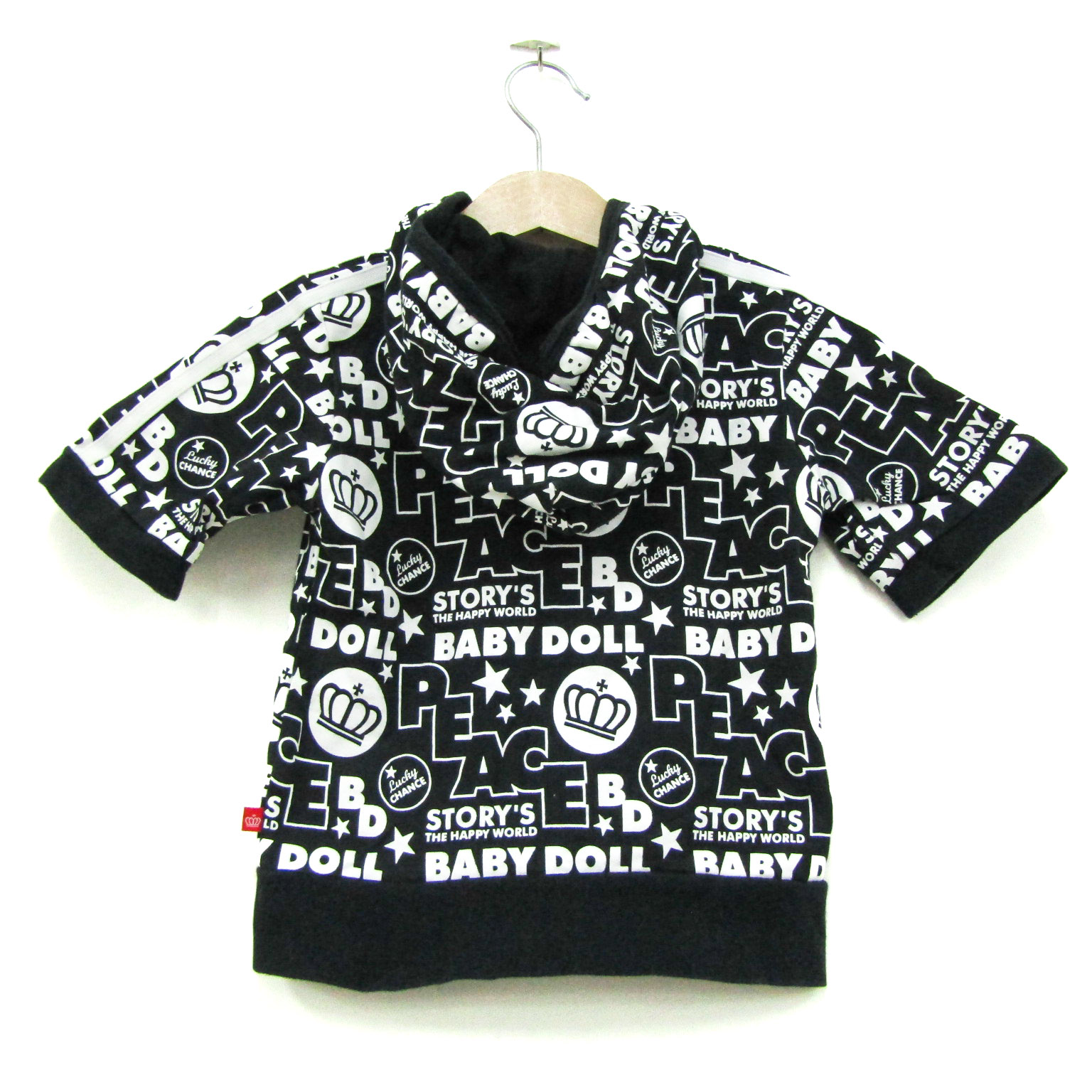 ベビードール パーカー 5分袖 コットン100% ブランド トップス 黒 白 キッズ 男の子用 100サイズ ブラッ...