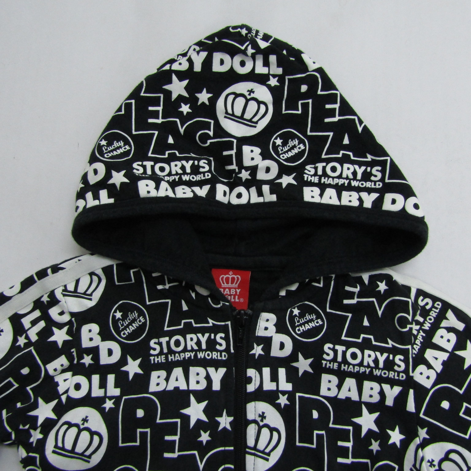 ベビードール パーカー 5分袖 コットン100% ブランド トップス 黒 白 キッズ 男の子用 100サイズ ブラック×ホワイト BABYDOLL 【中古】