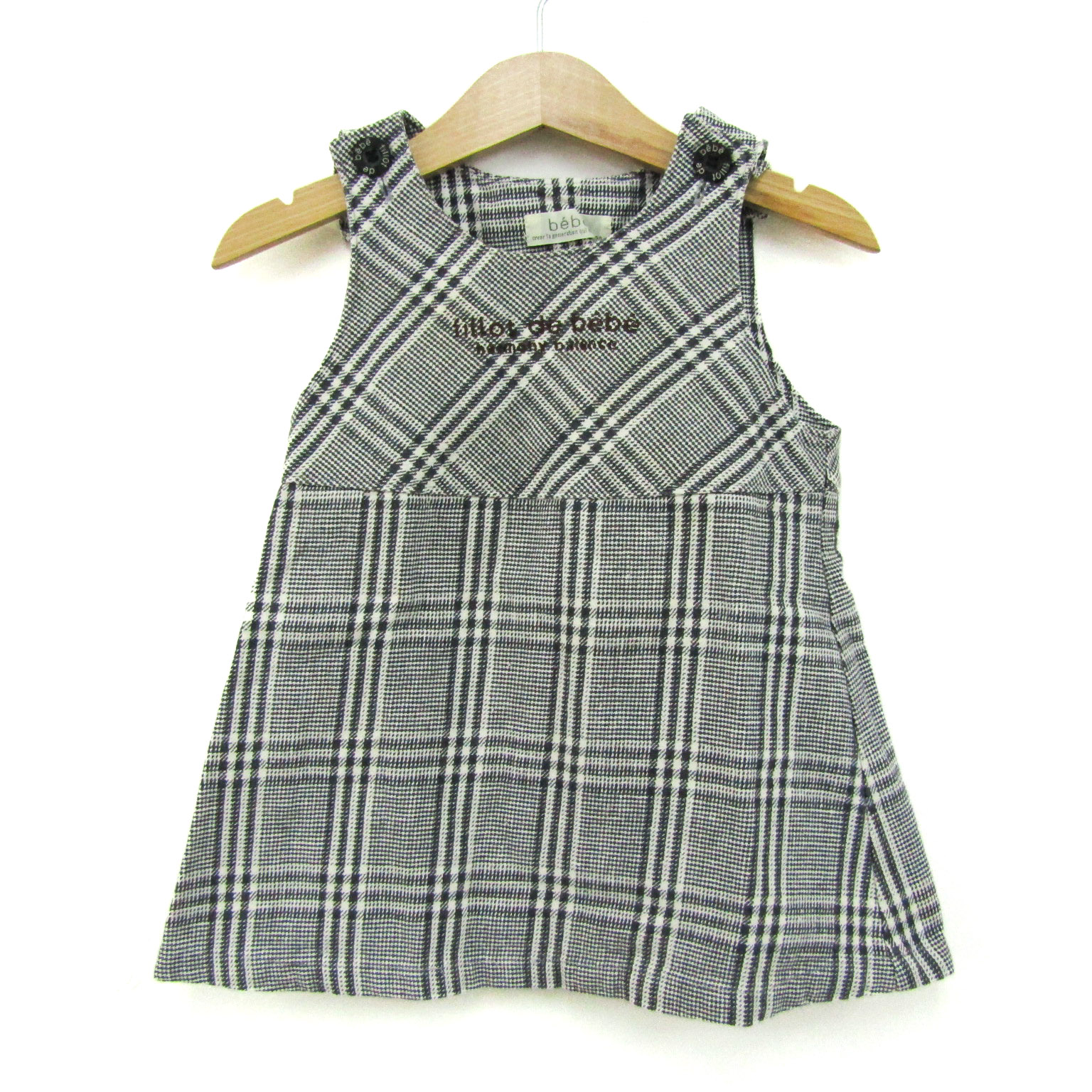 べべ ワンピース ジャンパースカート コットン100% ブランド トップス 白 キッズ 女の子用 90サイズ ホワイト×ネイビー BeBe 【中古】