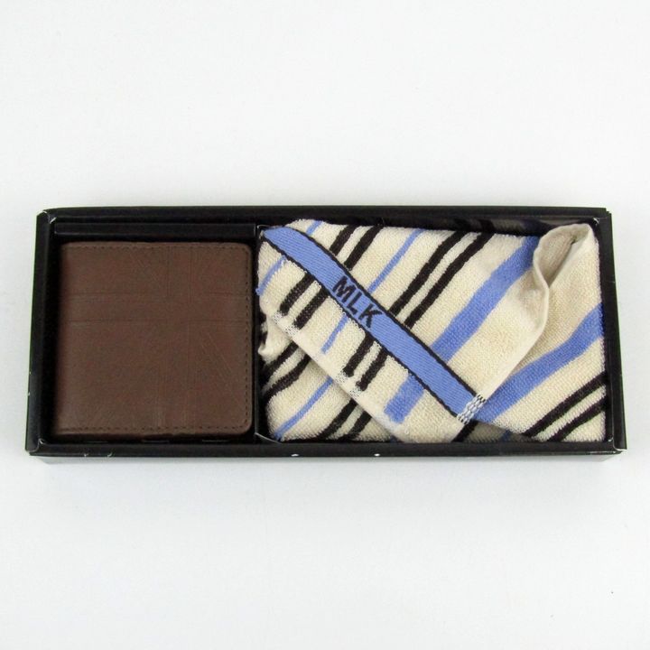 ミチコロンドン コインケース タオルハンカチ 2点セット 財布 ブランド ハンカチ ウォレット メンズ ブラウン MICHIKO LONDON 【中古】