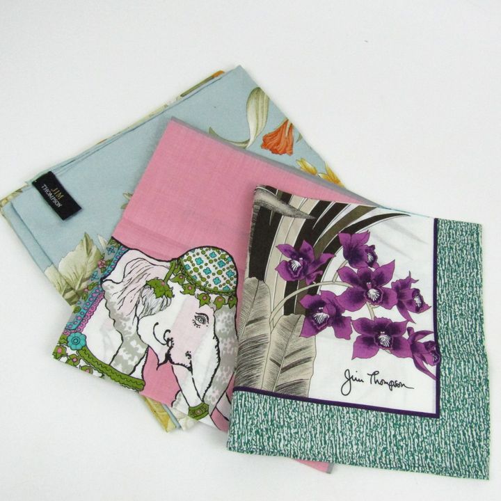 ジムトンプソン スカーフ ハンカチ 3点セット 花柄 ゾウ柄など ブランド まとめて レディース JIM THOMPSON 【中古】