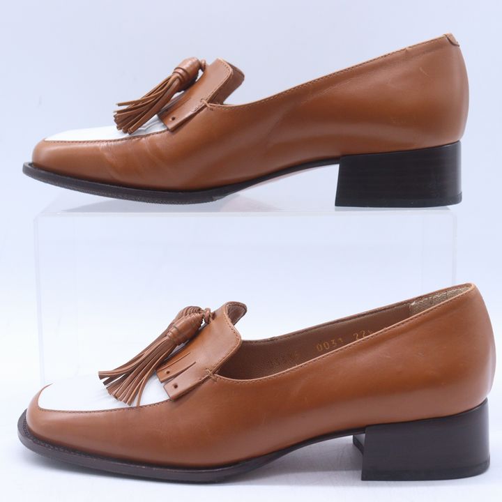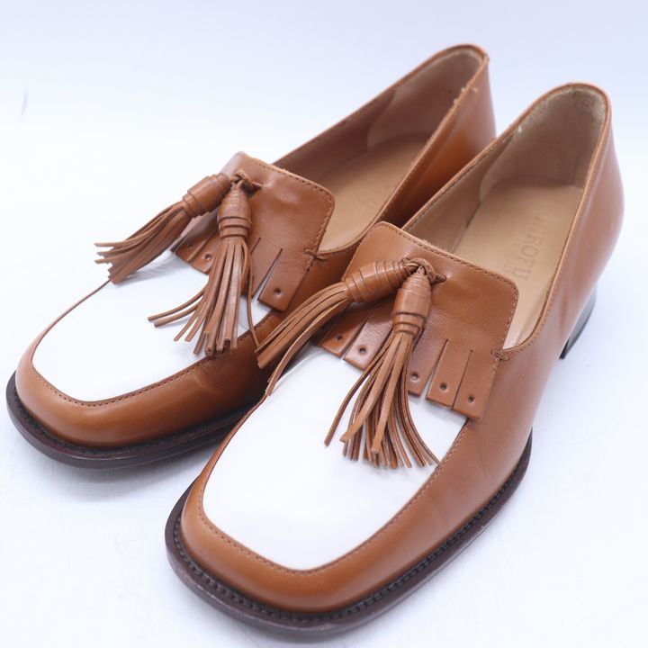 ヒロフ ローファーパンプス シューズ ブランド 靴 イタリア製 レディース 22.5サイズ ブラウン HIROFU ...