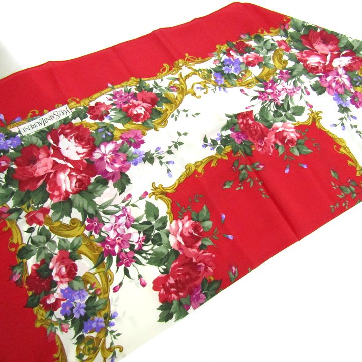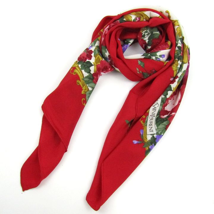 イヴサンローラン スカーフ ストール シルク 日本製 ブランド レディース レッド YVES SAINT LAURENT 【中古】