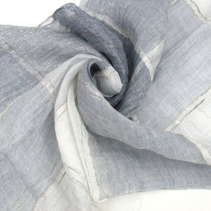 アクアスキュータム ストール スカーフ リネン混 日本製 ブランド レディース ブルー/ホワイト Aquascutum 【中古】