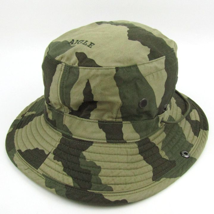 エーグル ハット 帽子 カモフラ柄 ブランド メンズ レディース Mサイズ グリーン AIGLE 【中古】