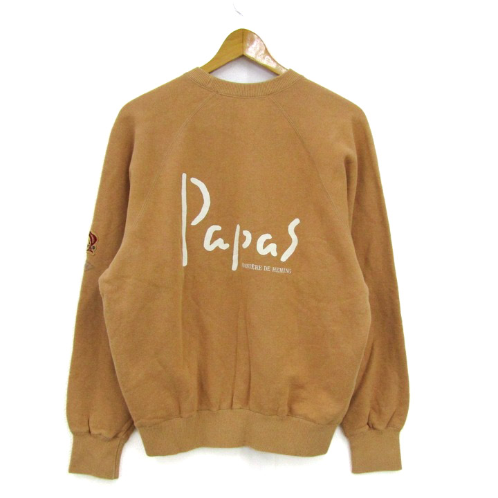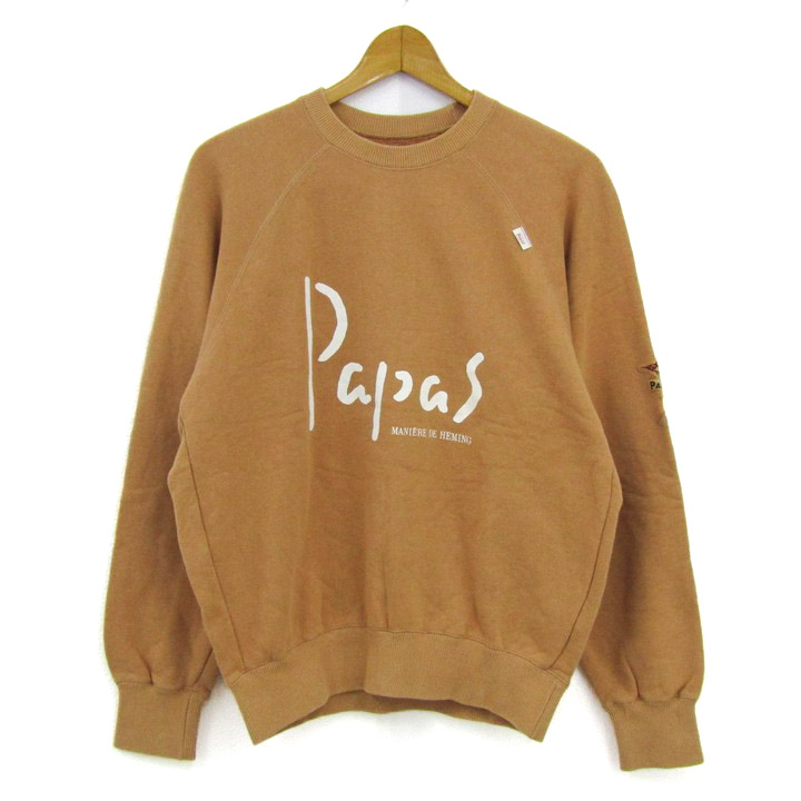 パパス スウェット トレーナー トップス ロゴ ラグラン袖 メンズ Mサイズ ブラウン papas 【中古】