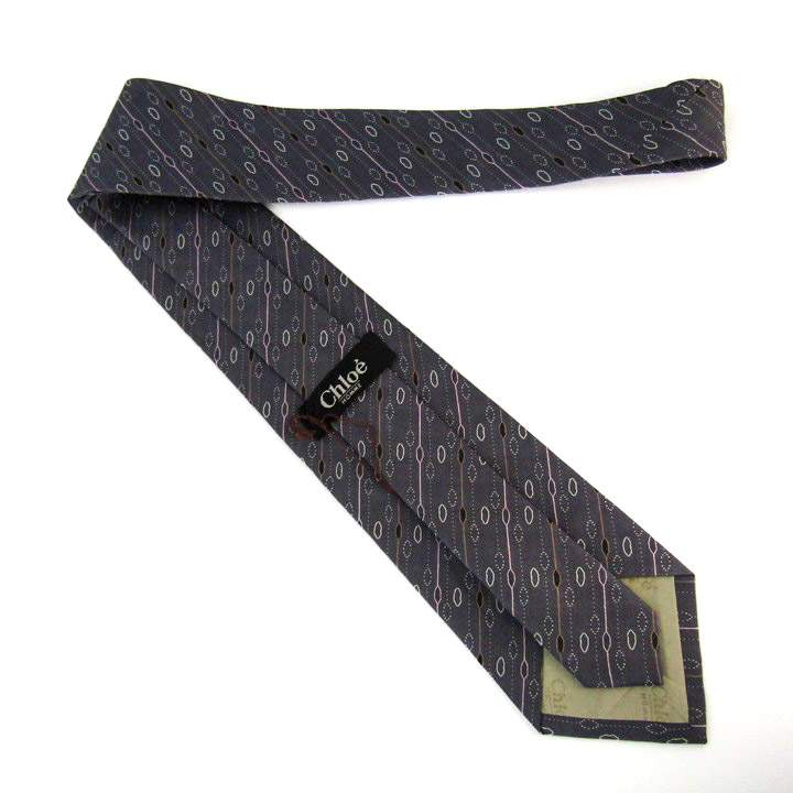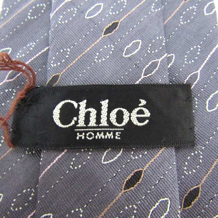 クロエオム ブランド ネクタイ ストライプ柄 シルク 日本製 未使用タグ付 PO メンズ グレー Chloe HOMME 【中古】