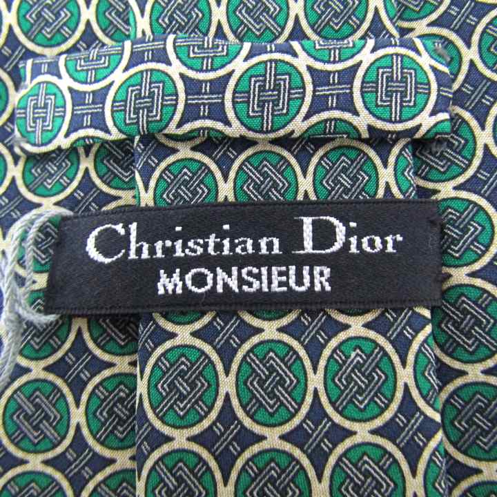 クリスチャンディオール ブランド ネクタイ チェック柄 ドット柄 シルク 未使用タグ付 PO メンズ ネイビ...