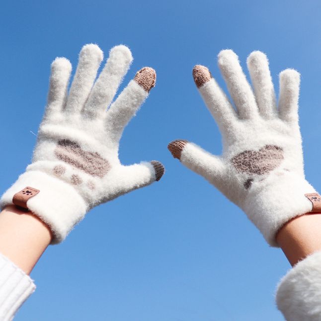 秋冬新作 手袋 ニット手袋 裏起毛 グローブ スマホ対応 スクリーンタッチ ハートデザイン