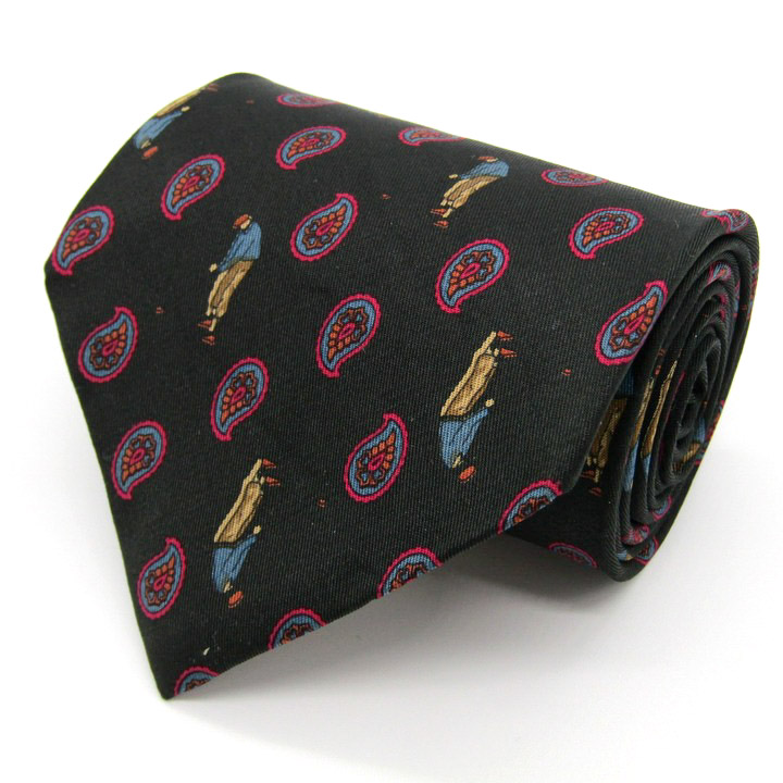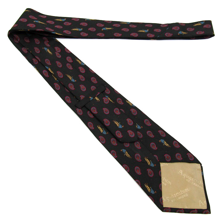 アクアスキュータム ブランドネクタイ ゴルフ ペイズリー 小紋柄 イタリア製 PO メンズ ブラック Aquasc...