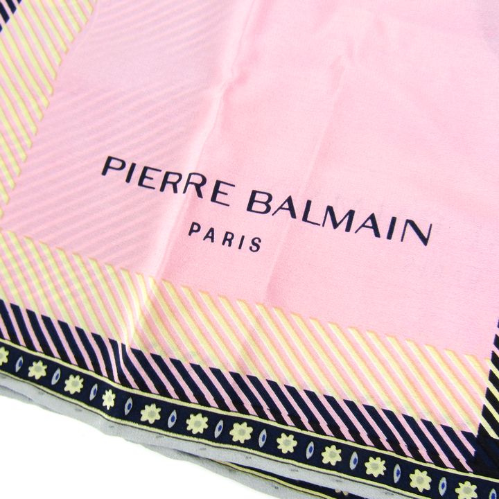 ピエールバルマン スカーフ ペイズリー チェック柄 シルク ブランド レディース ブラック PIERRE BALMAIN 【中古】
