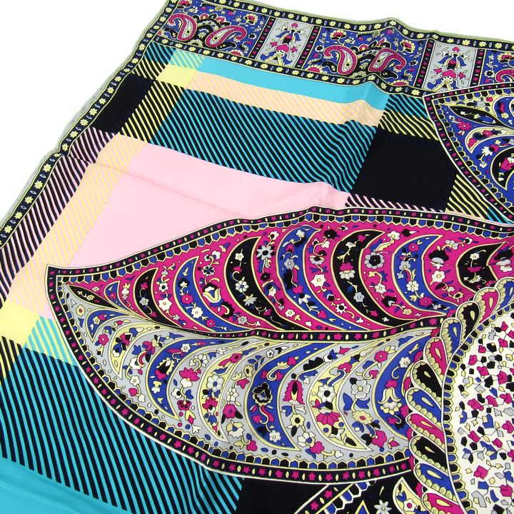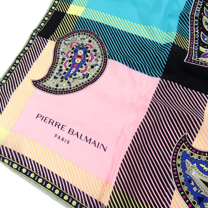 ピエールバルマン スカーフ ペイズリー チェック柄 シルク ブランド レディース ブラック PIERRE BALMAI...