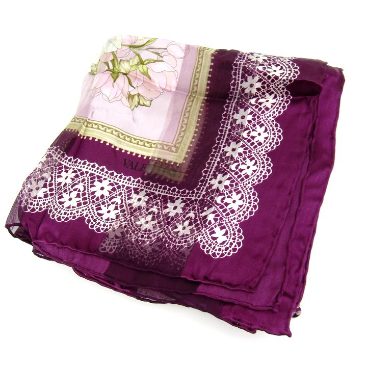 ヴァレンティノ スカーフ 花柄 ブランド レディース パープル VALENTINO 【中古】