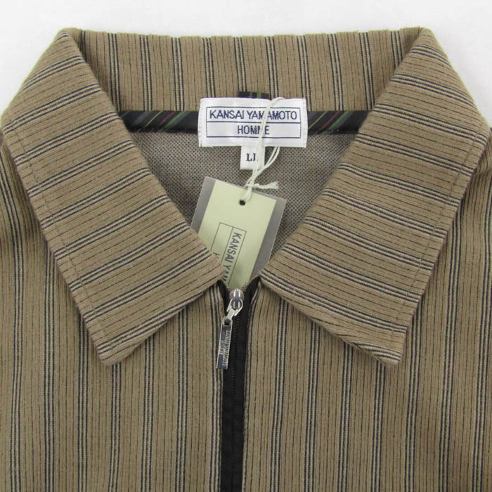 カンサイヤマモトオム ポロシャツ トップス ハーフジップ 大きいサイズ メンズ LLサイズ ベージュ×黒 KANSAI YAMAMOTO HOMME 【中古】