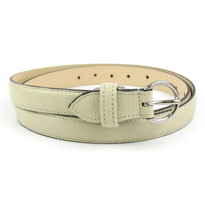 ラコステ スリムベルト サークルバックル レザー ブランド レディース ベージュ LACOSTE 【中古】