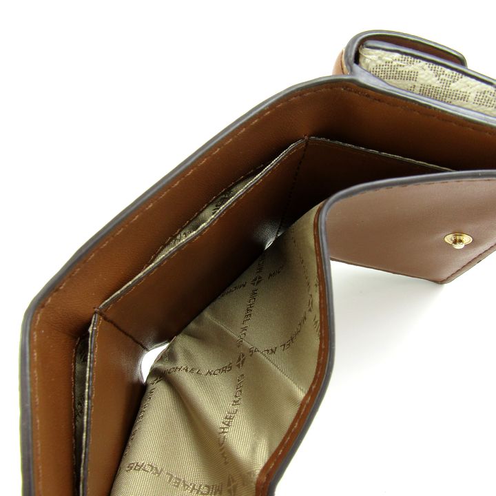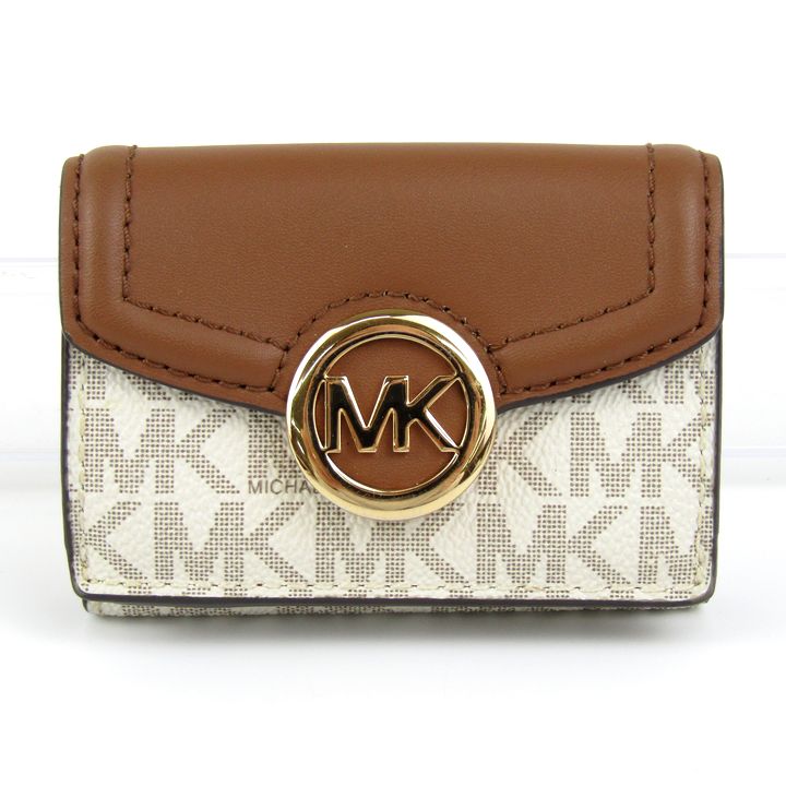 マイケルコース 三つ折り財布 MK シグネチャー 小銭入れあり コンパクト ウォレット ブランド レディース ブラウン Michael Kors 【中古】
