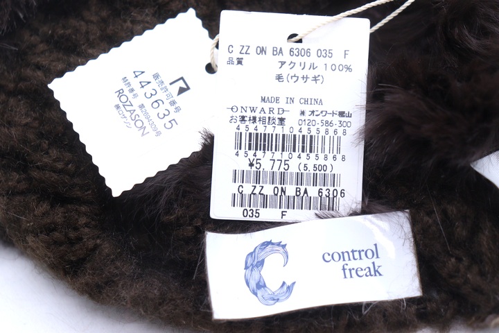 コントロールフリーク ニットキャップ ニット帽子 未使用 ラビットファー ブランド レディース Fサイズ ...