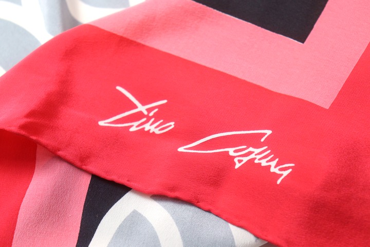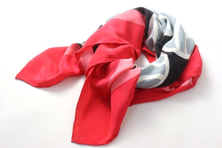 ティノコズマ スカーフ 総柄 シルク イタリア製 ブランド 小物 レディース レッド×ピンク×グレー Tino Cosma 【中古】