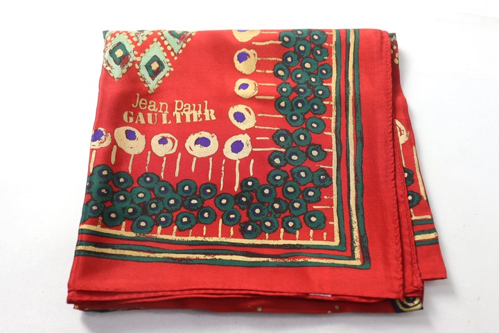 ジャンポールゴルチエ スカーフ 総柄 シルク ブランド 小物 レディース レッド JEAN-PAUL GAULTIER 【中古】