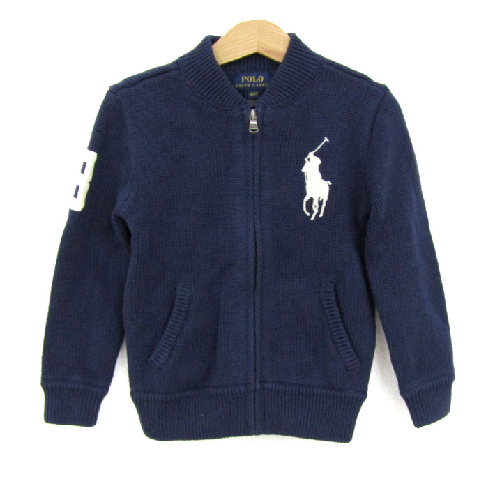ポロラルフローレン ブルゾン ジャケット アウター ニット ビッグポニー キッズ 男の子用 4/4Tサイズ ネイビー POLO RALPH LAUREN 【中古】