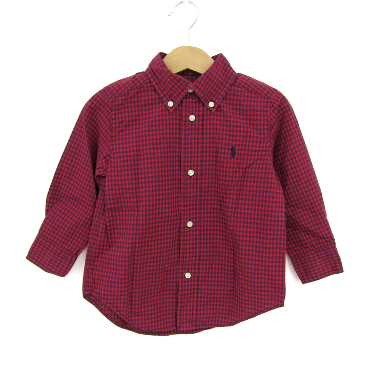 ラルフローレン 長袖シャツ トップス ボタンダウン チェック柄 ベビー 男の子用 2/2T 90/52サイズ 赤×紺 RALPH LAUREN 【中古】