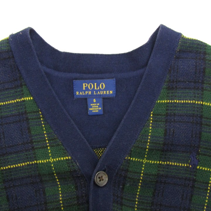 ポロラルフローレン カーディガン トップス 長袖 Vネック チェック柄 キッズ 男の子用 6サイズ 紺×緑×黄...