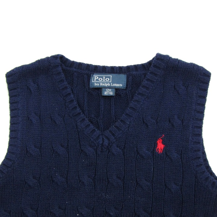 ポロバイラルフローレン ベスト ジャケット アウター Vネック ケーブルニット ベビー 男の子用 12Mサイズ 紺 Polo by Ralph Lauren 【中古】