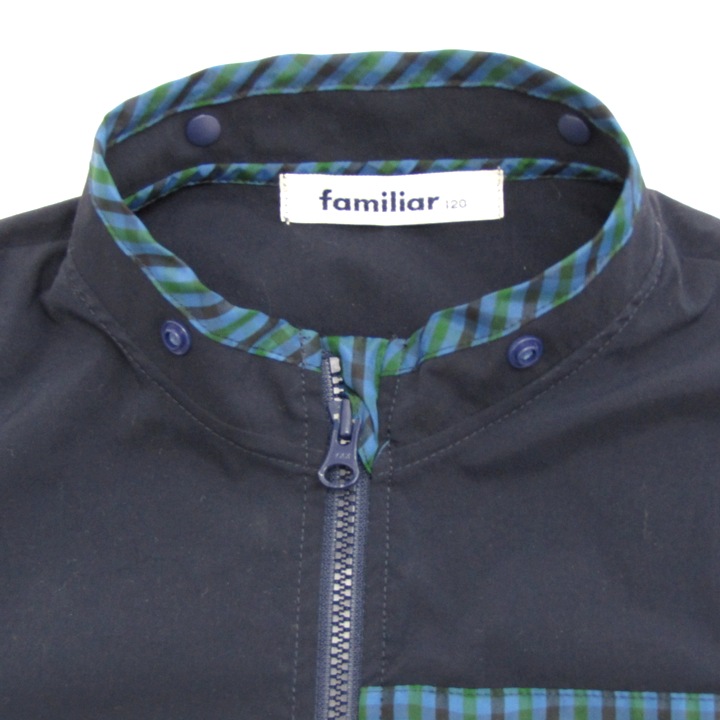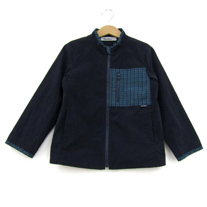 ファミリア ブルゾン ジャケット アウター チェック柄 キッズ 男の子用 120サイズ ネイビー Familiar 【中古】