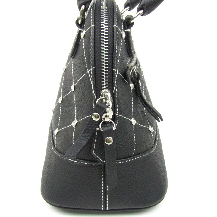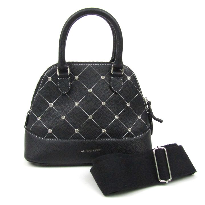 ラ バガジェリー ラインストーンリベット カウレザー2wayハンドバッグ ショルダーバッグ 本革 鞄 レディース ブラック LA BAGAGERIE 【中古】
