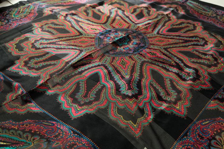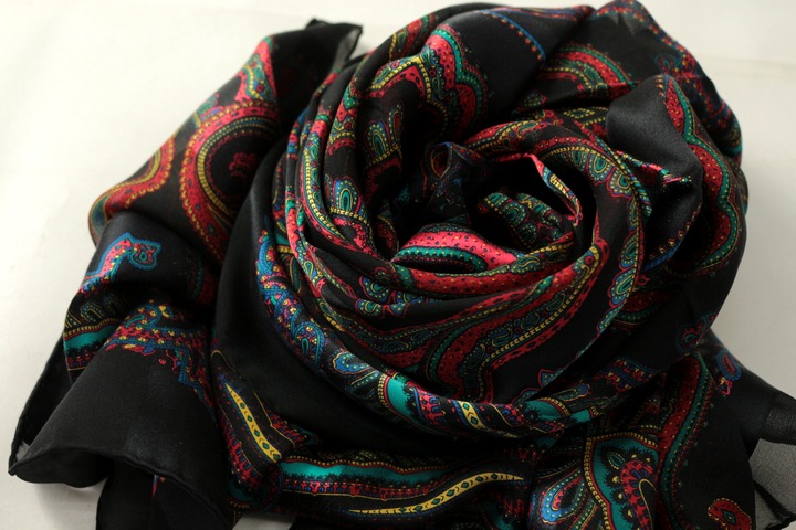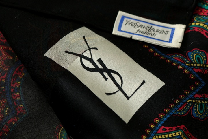 イヴ・サンローラン スカーフ ストール ペイズリー柄 シルク ブランド 小物 レディース ブラック YVES S...