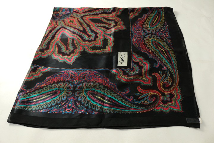 イヴ・サンローラン スカーフ ストール ペイズリー柄 シルク ブランド 小物 レディース ブラック YVES SAINT LAURENT 【中古】