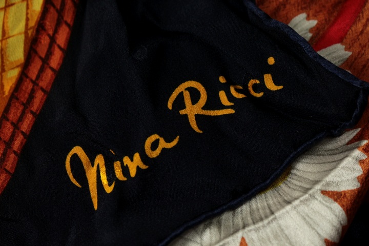 ニナリッチ スカーフ 花柄 シルク イタリア製 ブランド 小物 レディース イエロー×レッド×ネイビー NINA...