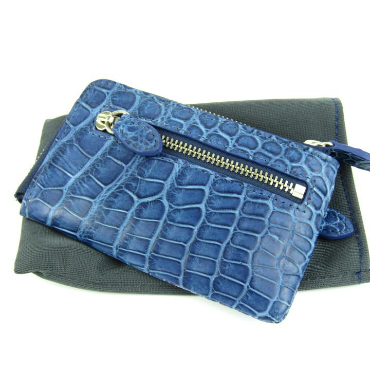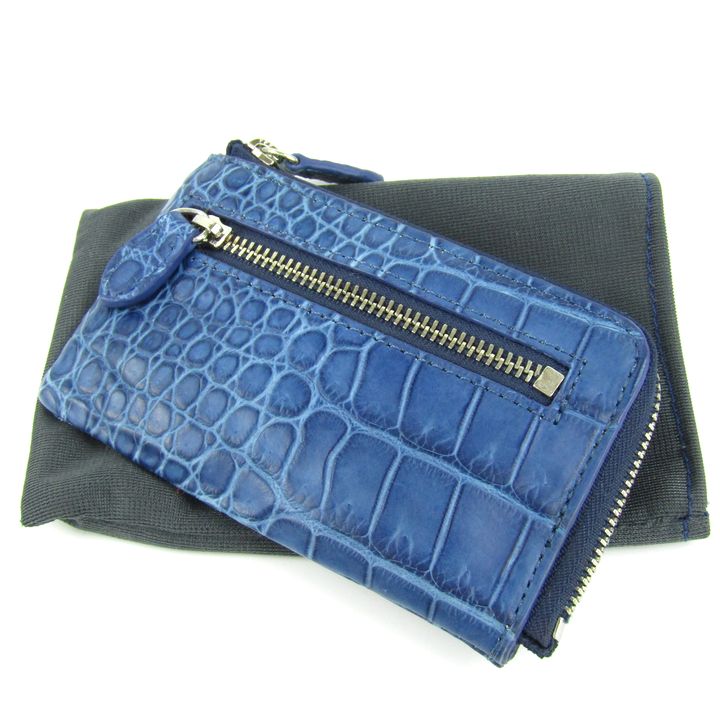 ジャパンブルー 藍染めクロコ コインケース 財布 クロコダイル リアルレザー 本革 ウォレット ミニ財布 ...