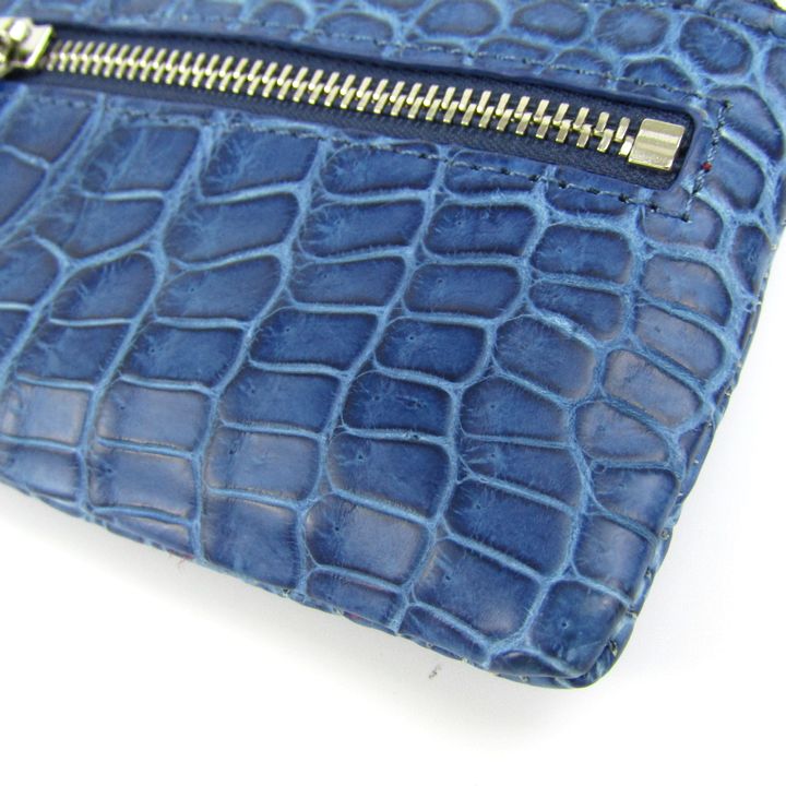 ジャパンブルー 藍染めクロコ コインケース 財布 クロコダイル リアルレザー 本革 ウォレット ミニ財布 メンズ ブルー wallet 【中古】