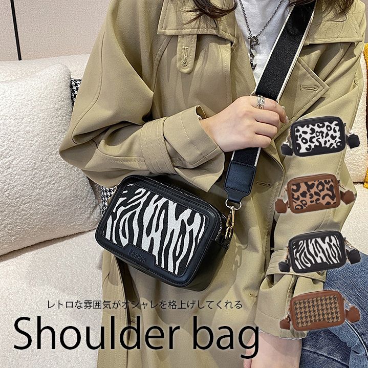 ■コメント・アニマル柄を取り入れたデザインのスクエアショルダーバッグ。・肩掛けのストラップは取り外し可能。・ショルダーストラップは取り外しができるので、ポーチとしても大活躍!。・いつものの服装に合わせるだけで、季節感&トレンド感が増しおしゃれになります。・ファスナー仕様で中の物が落ちる心配がありません。・お子様から大人まで使えるバッグです。※5点以上~ご注文の場合、より『お得』に!是非ご活用ください。■サイズ(約cm)幅18、高さ12、マチ7、肩紐132/290g■カラー画像に記載■素材合成皮革+ポリエステル■裏地なし■内ポケットなし