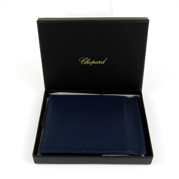ショパール 二つ折り財布 レザー マネークリップ 札入れ ウォレット ブランド メンズ ネイビー Chopard 【中古】