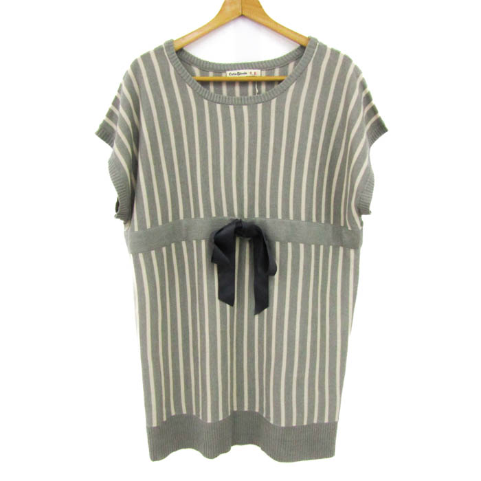 キューティーブロンド ニットワンピース トップス チュニック 未使用品 レディース Lサイズ グレー×ベージュ×紺 Cutie Blonde 【中古】