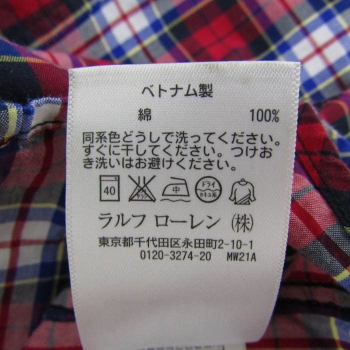 ラルフローレン 長袖シャツ トップス チェック柄 ボタンダウン キッズ 男の子用 M(10-12)サイズ 赤×青×...