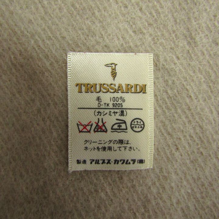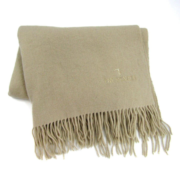 トラサルディ ひざ掛け ストール ウール カシミヤ混 無地 ロゴ ブランド レディース ベージュ TRUSSARDI 【中古】