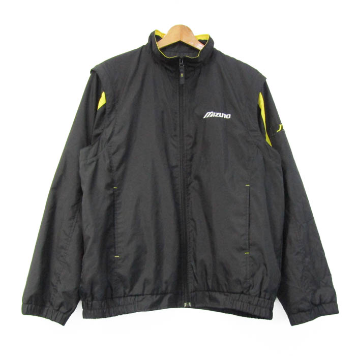 ミズノ ナイロンジャケット ブルゾン ウインドブレーカー スポーツウエア アウター 黒 メンズ Lサイズ ブラック×イエロー Mizuno 【中古】