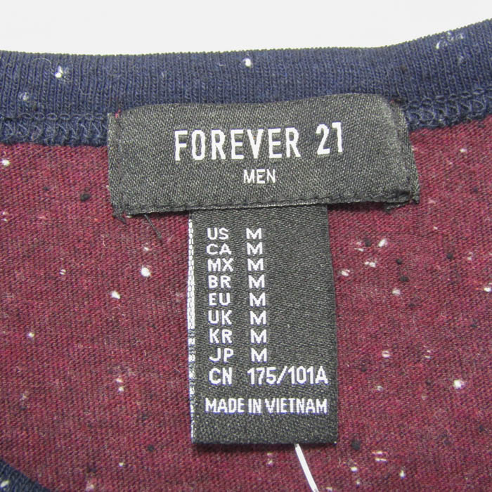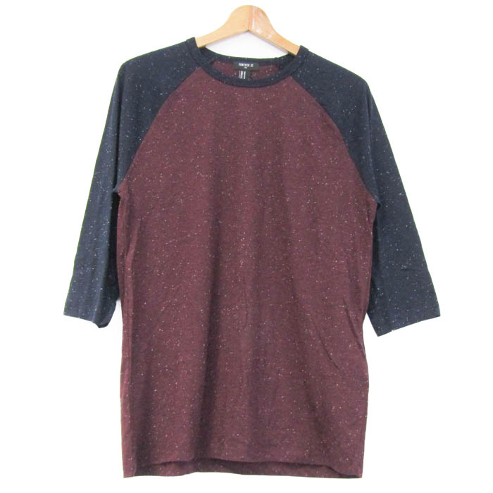フォーエバー21 長袖Tシャツ 未使用 ラグランスリーブ トップス メンズ Mサイズ エンジ×ホワイト×ネイ...