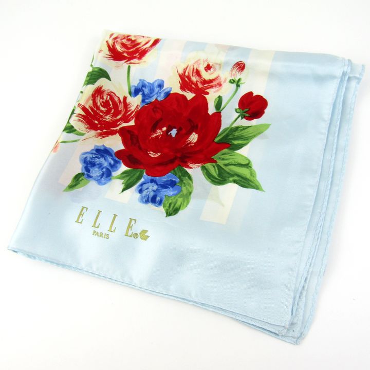 エル スカーフ 花柄 ブランド 小物 レディース パステルブルー ELLE 【中古】