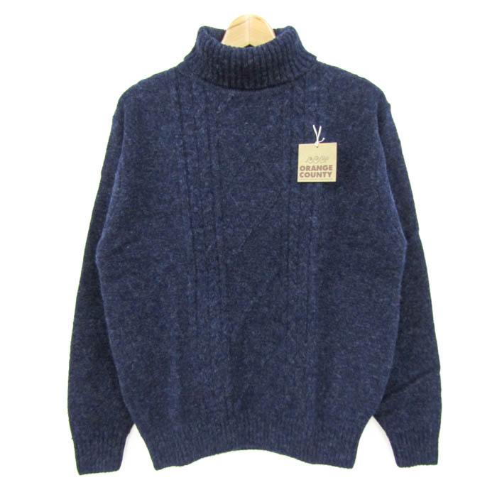 オレンジカントリー ニット セーター 長袖 未使用 ウール100% ブランド トップス メンズ Lサイズ ネイビー ORANGE COUNTRY 【中古】