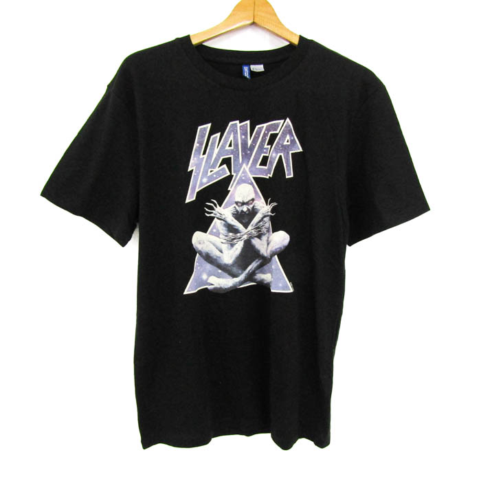 エイチアンドエム 半袖Tシャツ コットン100% SLAVER ロックT プリントT トップス 黒 メンズ US Sサイズ...