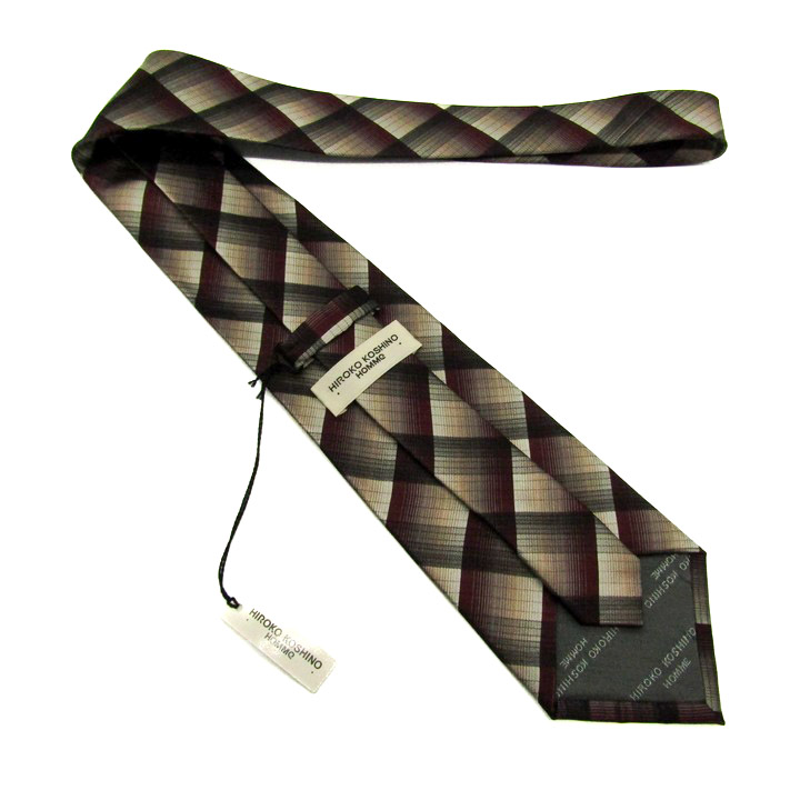 ヒロココシノ ブランドネクタイ チェック柄 格子柄 シルク 未使用タグ付 PO メンズ ブラウン HIROKO KOS...